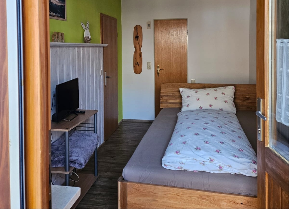 Sie haben die Auswahl von einem Einzelzimmer. Dieses ist in einem rustikalem, bayrischen Stil, und sehr gemütlich eingerichtet.